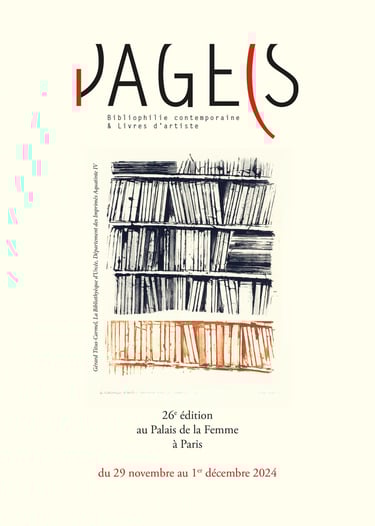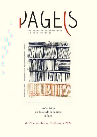 Page(s invite Gérard Titus-Carmel, peintre & poète, et expose un bel ensemble de ses livres d’artiste, et cinq estampes de la série «La Bibliothèque d’Urcée» au Palais de la Femme à Paris